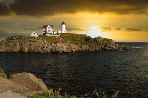 Sul percorso verso Kennebunkport troverete Cape Neddick Nubble Lighthouse (York, Maine), uno dei fari più iconici del Maine con una vista spettacolare sull’oceano.