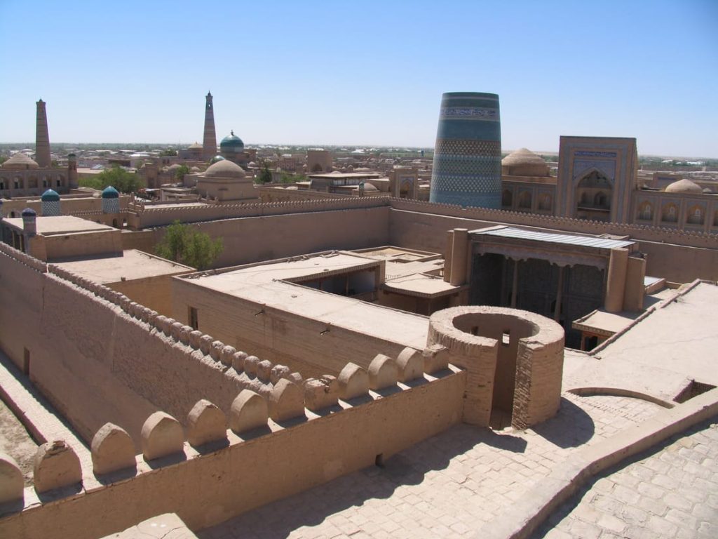 Arrivo all’aeroporto di Urgench e partenza per Khiva. Sistemazione in hotel. Pranzo in ristorante locale. Nel pomeriggio inizio della visita della città, la più intatta della “Via della Seta” in Asia centrale. Visita del complesso di Ichan Kala, fortezza con minareti ed edifici che testimoniano la tradizione architettonica orientale, la madrassa di Amin Khan, il minareto di Kalta Minor, la fortezza “Kunya Ark”, la madrassa di Mukhamed Rahim Khan, il mausoleo Pakhlavan Makhmud, con il suo cortile con piastrelle di ceramica, la madrassa e il minareto di Islam Khodja, la moschea del venerdi. Cena in ristorante locale e pernottamento.