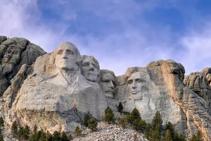 All’altro capo della valle, il Mount Rushmore, scolpito con i volti di quattro grandi Presidenti: Washington, Jefferson, Lincoln e Roosevelt, simbolo del governo, venutosi a creare senza non pochi problemi,