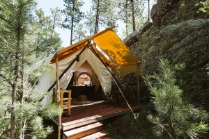 Per chi lo volesse, possibilità di dormire in tende attrezzate con bagni privati all’Under Canvas Mount Rushmore, all’interno del Parco.. (vedi supplemento).