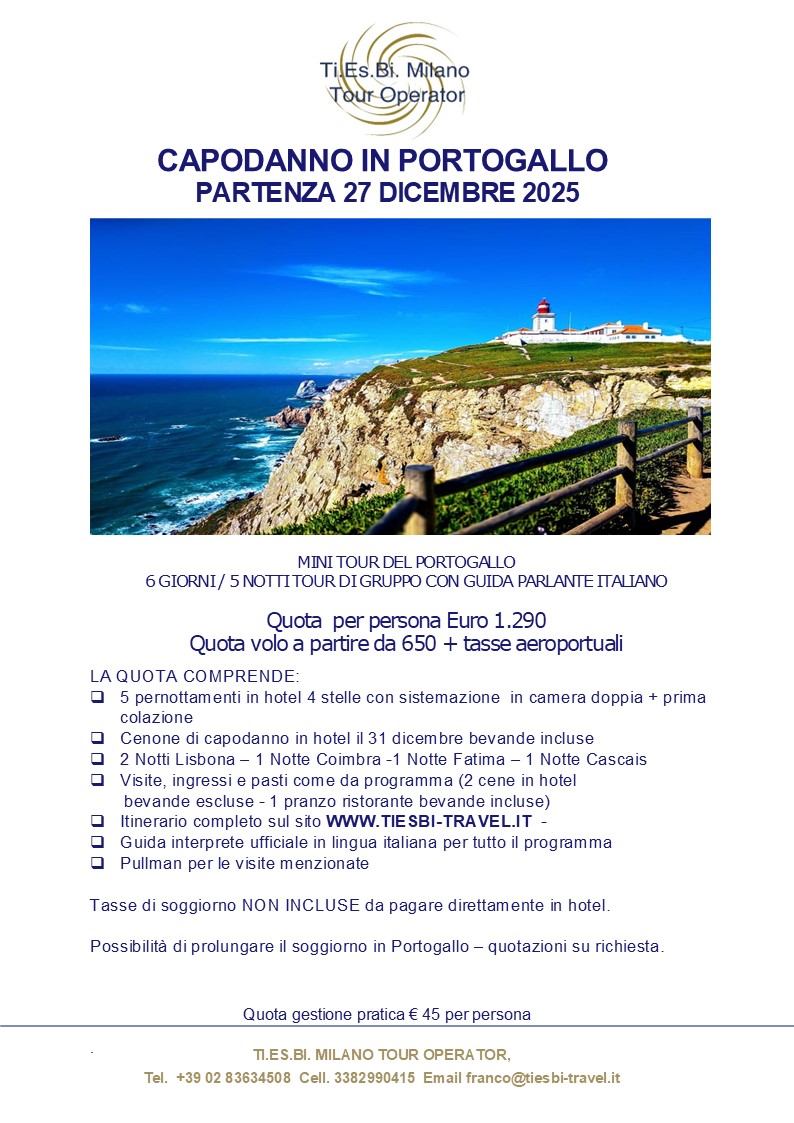 Itinerario: 2 notti a Lisbona, 1 a Coimbra, 1 a Fatima e 1 a Cascais