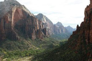 Proseguimento per il Parco nazionale di Zion, protegge un ambiente unico dove si incontrano imponenti formazioni rocciose e profonde gole incise e modellate dalla forza delle acque del Virgin River e dei suoi affluenti. L’azione erosiva dell’acqua ha messo a nudo l’antichissima storia geologica di questa regione, che può essere letta nelle pareti di roccia dei canyon. La varietà di ambienti naturali garantisce inoltre un’enorme varietà di flora e fauna, tra cui numerose specie a rischio di estinzione, che nel parco sono protette e tutelate. Oltre alle ricchezze naturali, il parco di Zion può vantare una presenza millenaria dell’uomo che in questi canyon ha lasciato numerose tracce del suo passato. Il nome Zion, adottato ufficialmente per designare il canyon nel 1918, viene fatto risalire a Isaac Behunin, uno dei primi coloni mormoni insediatisi nel canyon nel 1863, il quale riteneva di aver trovato in quel luogo la Sion descritta dal profeta Isaia nella Bibbia.