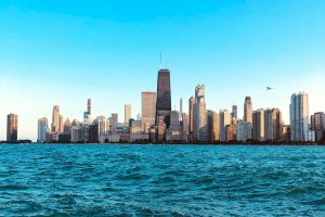 Situata sulle rive del Lago Michigan, nel cuore del Midwest, la città deve il suo sviluppo alla sua posizione strategica a metà via tra Est e Ovest diventando l’hub dei trasporti terrestri e fluviali. Nel 1830 veniva iniziata la costruzione dell’Illinois e Michigan Canal che rese possibile la navigazione dai Grandi Laghi (e quindi del fiume San Lorenzo) al fiume Mississippi, creando il grande collegamento tra il Golfo del Messico all’Atlantico del Nord. Fu così che nel 1833 fu fondata la città di Chicago. E’ considerato il principale nodo ferroviario degli Stati Uniti e il suo aeroporto O’Hare sopporta il traffico più intenso del mondo.